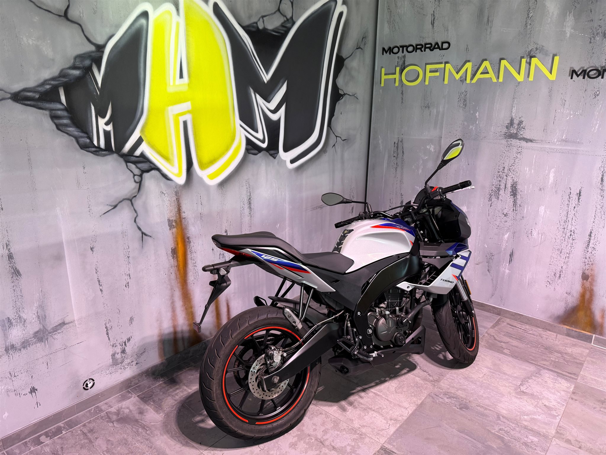 Aprilia Tuno 125 aus EZ 08/2024 mit Werksgarantie bis 08/2026 in top Zustand.