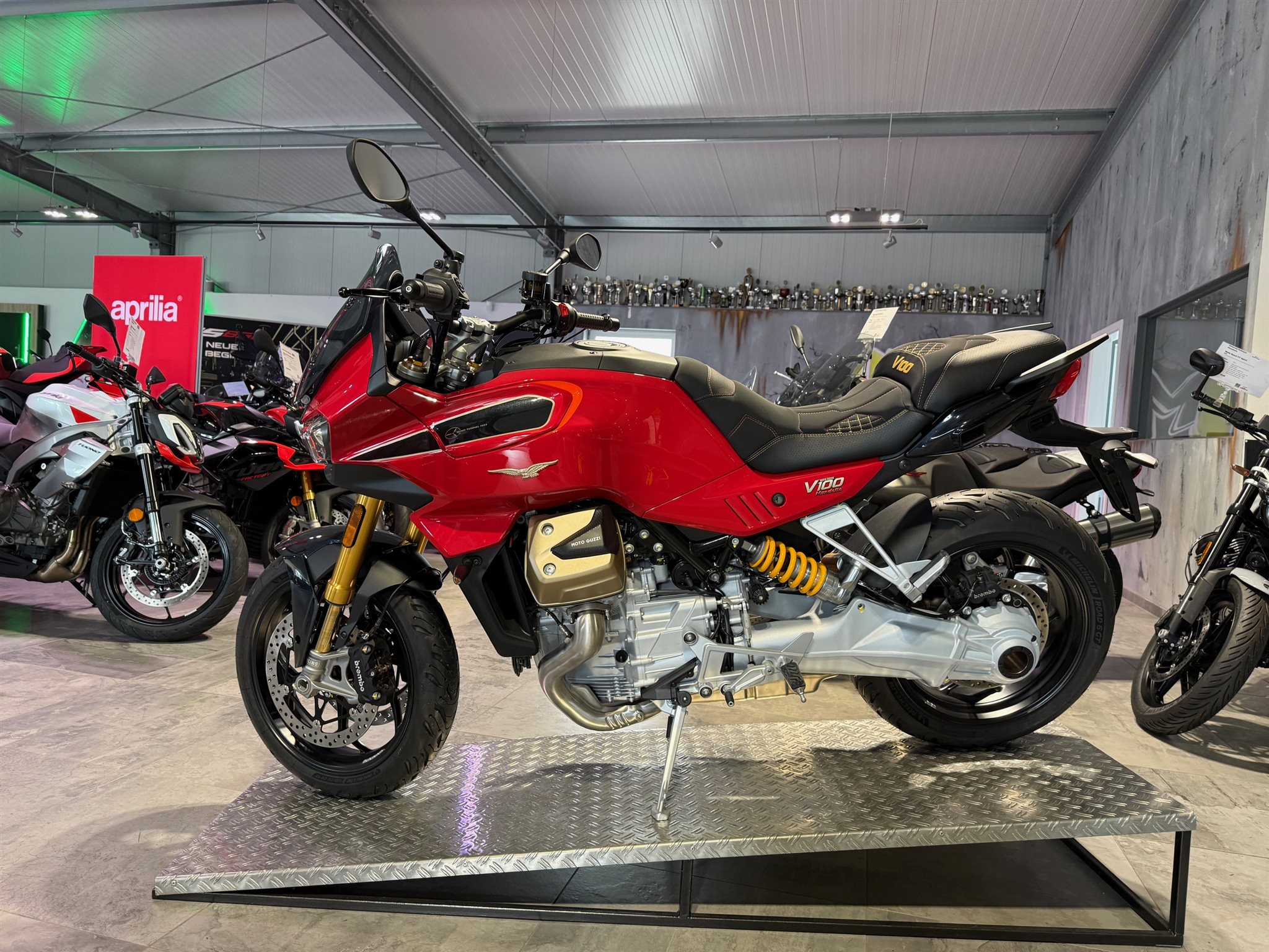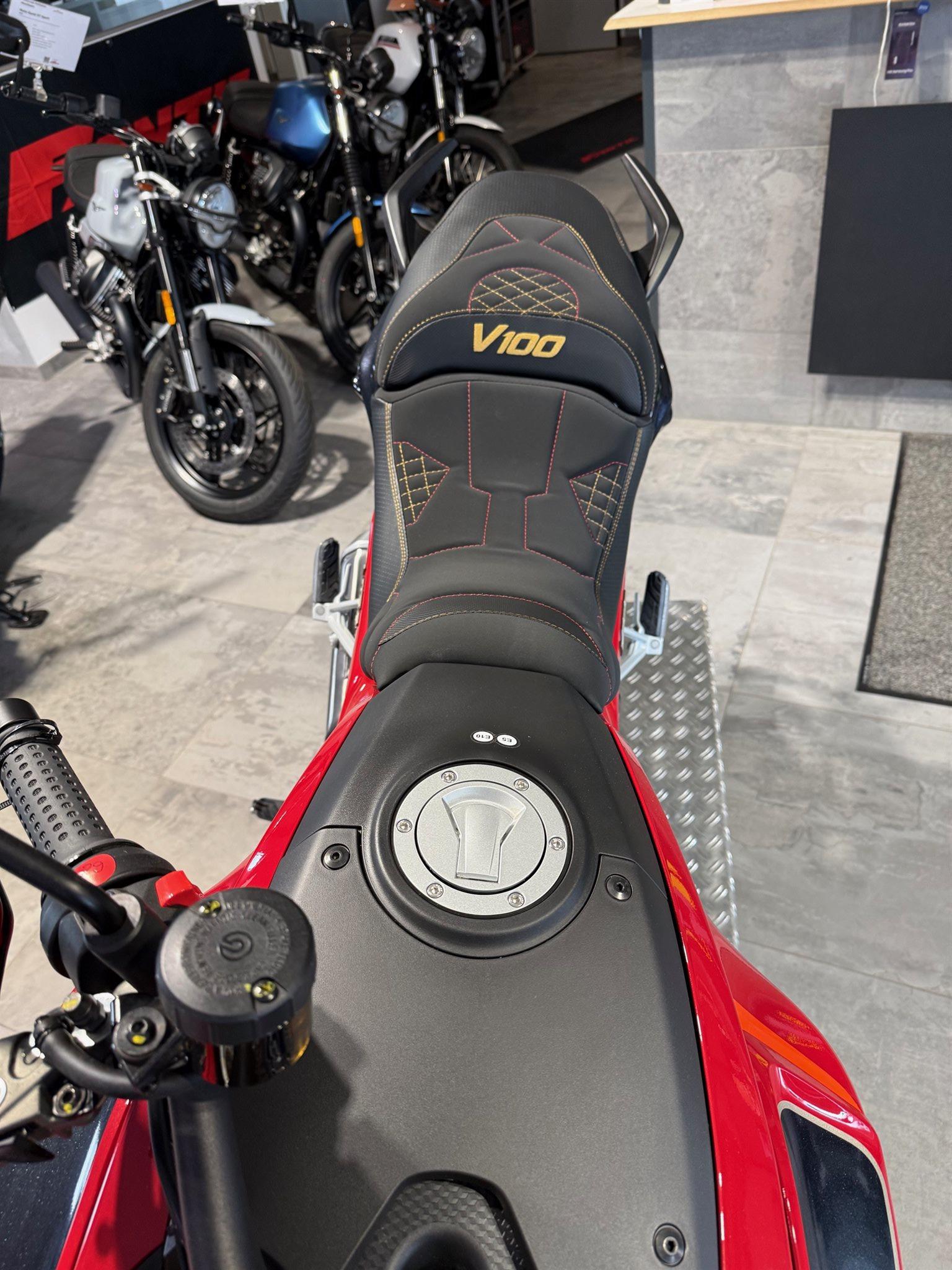 Touring- und Roadster-Qualitäten in Bestform. Die V100 Mandello S zeichnet sich durch ihre Highend-Federelemente sowie eine Extraportion Komfort und Technik aus. Details und Komponenten, die sie noch dynamischer, bequemer und sportlicher machen. Made in Mandello steht sie für Fahrvergnügen vom Feinsten, für Knowhow und innovative Technik aus über 100 Jahren Erfolg und Erfahrung im Motorradbau.
